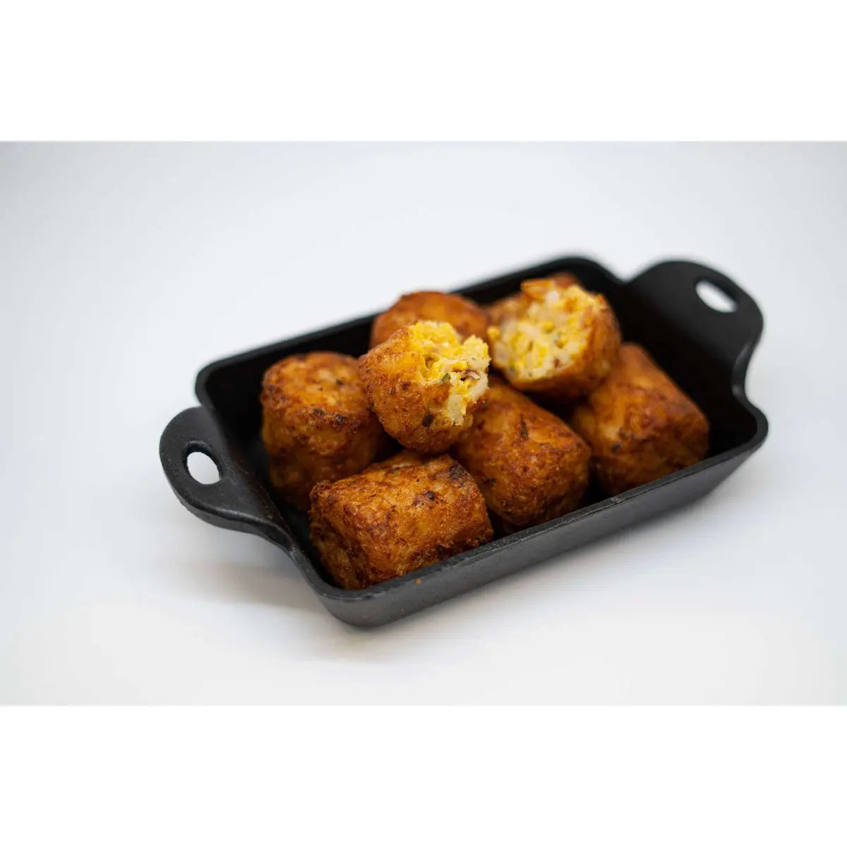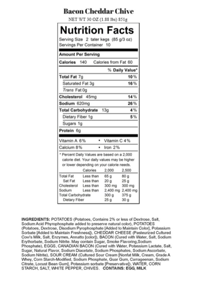 Forget everything you know about tater tots—our Tater Kegs Breakfast Skillet takes things to the next level with portions that actually satisfy. These jumbo hash brown cakes are crispy on the outside, tender within, and piled high with fluffy eggs, creamy cheddar, premium breakfast sausage, and a subtle kick of chives and black pepper. Ready whenever hunger strikes, no fancy cookware needed. It's the breakfast experience that actually lives up to the hype.