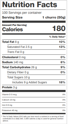 Ingredients: CHURRO MIX (ENRICHED WHEAT FLOUR [WHEAT FLOUR, MALTED BARLEY FLOUR, ENRICHED WITH NIACIN, REDUCED IRON, THIAMINE MONONITRATE, RIBOFLAVIN, FOLIC ACID], SUGAR, WHEAT STARCH, SOYBEAN OIL, BUTTERMILK, SOY FLOUR [CONTAINS SOY LECITHIN], FRUCTOSE, SALT, LEAVENING [SODIUM ACID PYROPHOSPHATE, SODIUM BICARBONATE], ARTIFICIAL FLAVORS, MONO AND DIGLYCERIDES, EGG WHITES), CREME FILLING (HIGH FRUCTOSE CORN SYRUP, WATER, SUGAR, FOOD STARCH-MODIFIED, VEGETABLE SHORTENING [PALM OIL, MONO AND DIGLYCERIDES, POLYSORBATE 60], SOYBEAN OIL, SALT, PRESERVATIVES [POTASSIUM SORBATE, SODIUM BENZOATE], NATURAL AND ARTIFICIAL FLAVORS, PHOSPHORIC ACID, TITANIUM DIOXIDE [COLOR], YELLOW 5, YELLOW 6), WATER, VEGETABLE OIL (CONTAINS ONE OR MORE OF THE FOLLOWING: CANOLA OIL, COTTONSEED OIL, PALM OIL, SOYBEAN OIL).